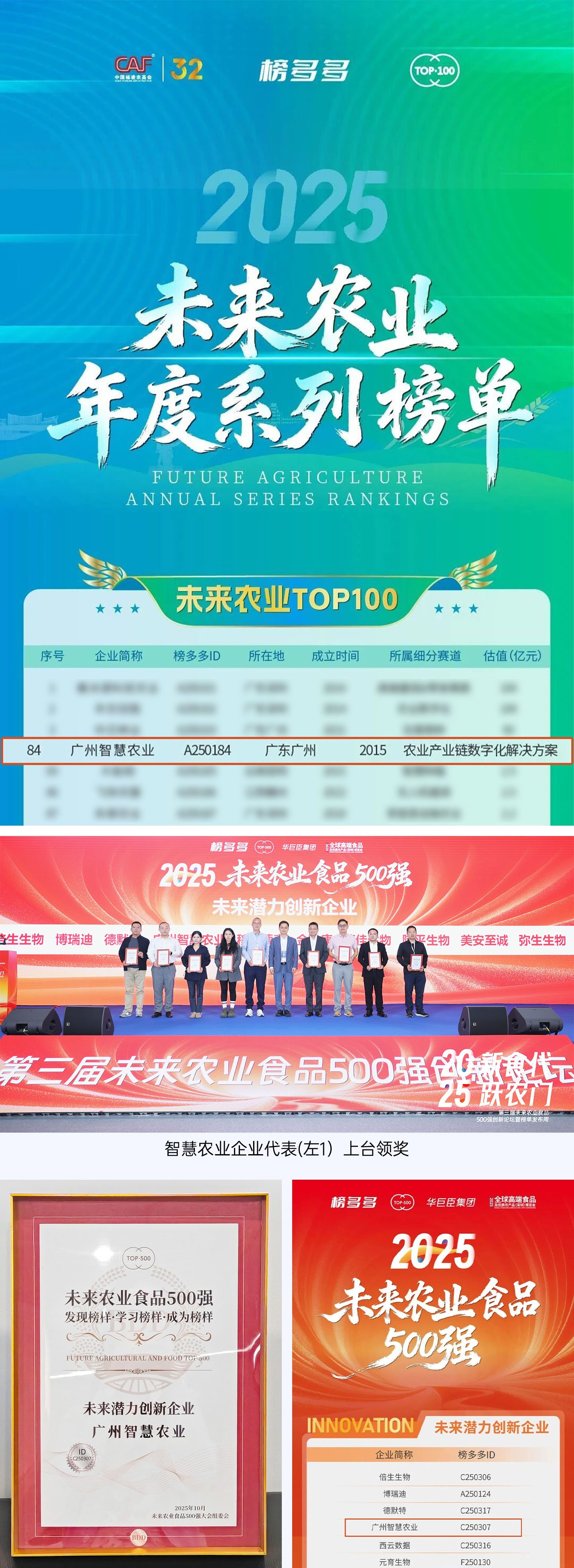 10月23日,在第三届未来农业食品500强创新论坛暨榜单发布周获评“未来潜力创新企业”。