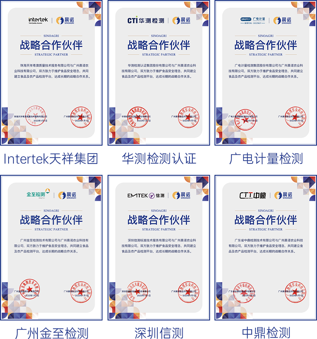 农产品食品检测服务:覆盖农残、兽药残留、重金属、微生物、食品添加剂、非法添加物等全方位检测项目;拥有INTERTEK天祥集团、华测检测、广电计量等深度战略合作伙伴,并具备CMA、CNAS、CATL等国际公信力报告资质,确保检测结果权威可靠。